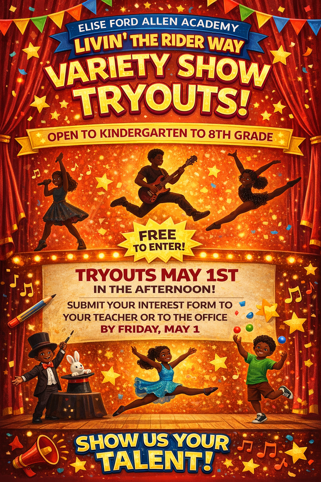There is so much to look forward to as we head into the final stretch of the school year, including Kindergarten Registration, the start of soccer and track season, Junior Achievement BizTown for our 5th and 6th graders, upcoming trips to the Riverfront Museum, and our “Livin’ the Rider Way” Variety Show.