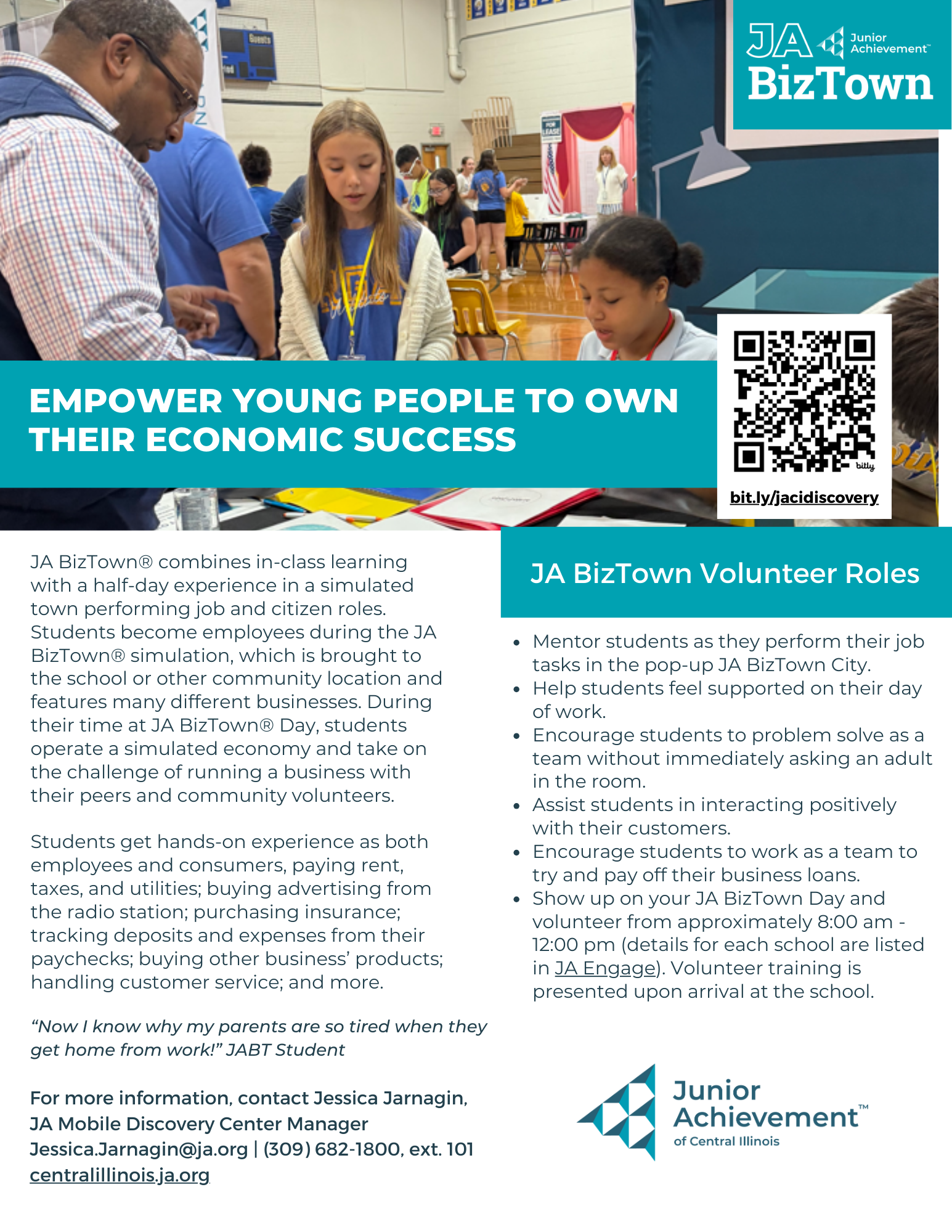 JA BIZ TOWN VOLUNTEERS NEEDED FOR THURS, APRIL 16 @ 8:45 |
