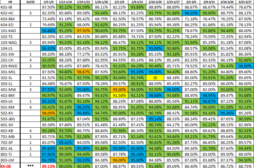 A PEEK AT OUR HOMEROOM ATTENDANCE FOR SEMESTER 2 LET'S KEEP OUR EYE ON 95% OR HIGHER EACH WEEK.