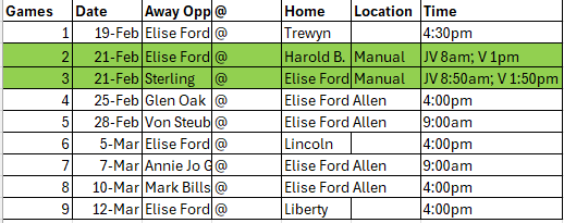 GIRLS VOLLEYBALL SCHEDULE |