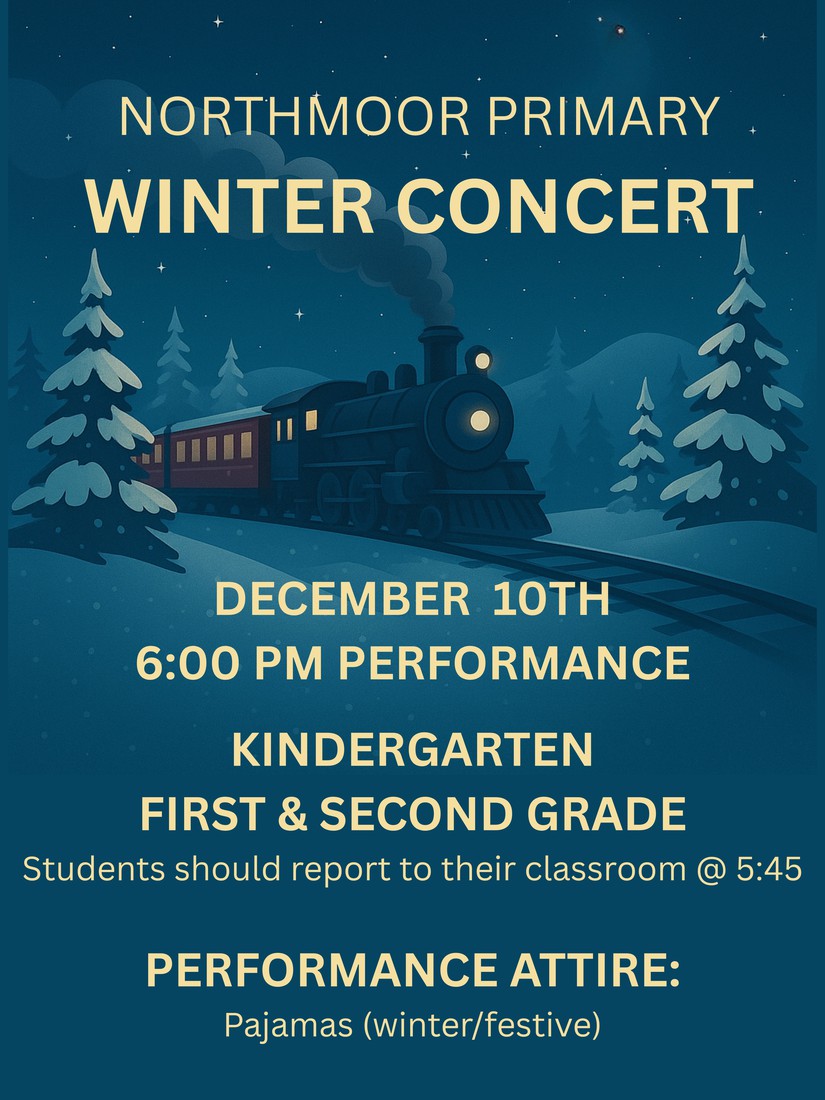 Wednesday, December 10 Kindergarten- 2nd Winter Concert 6:00-7:00pm