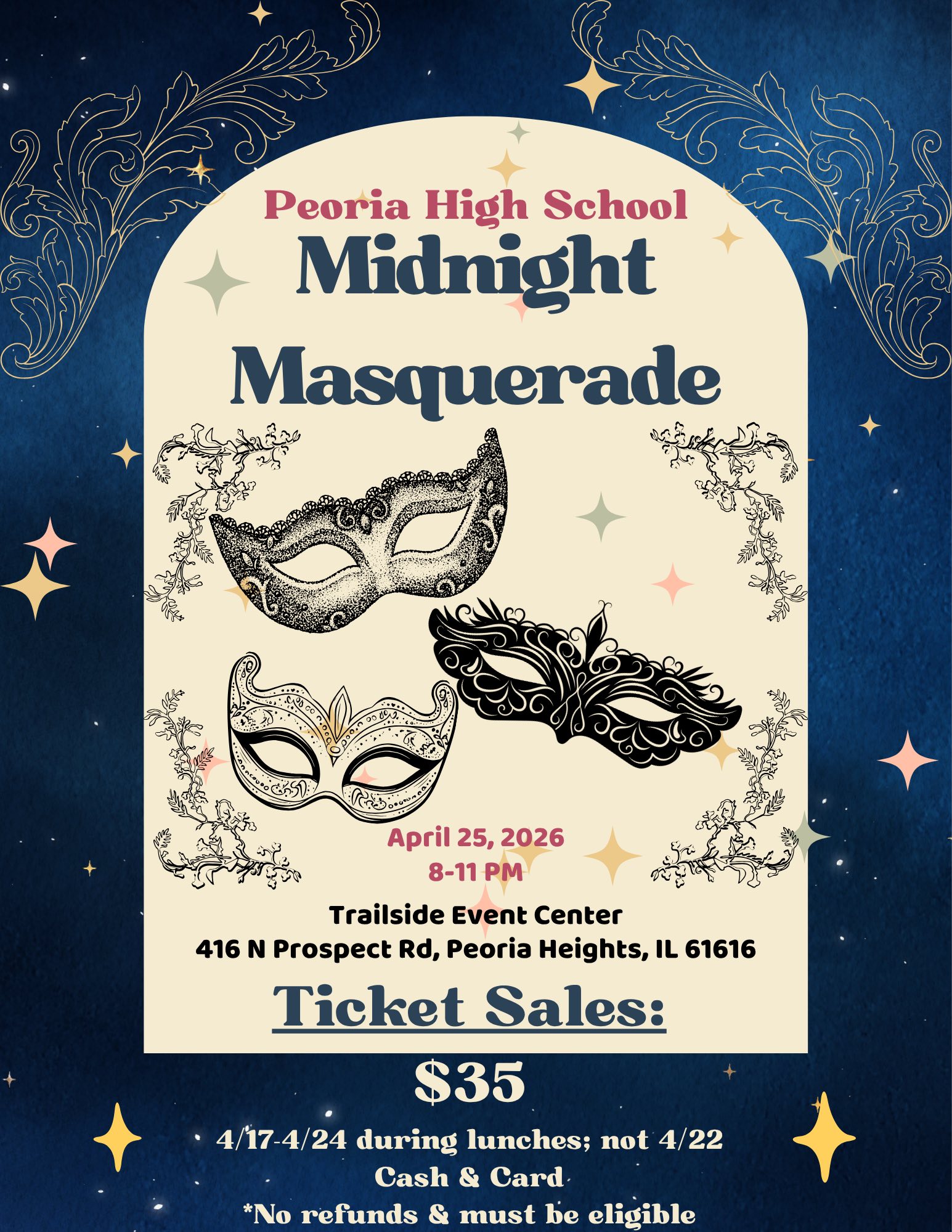 Prom is on April 25th, and tickets will be sold during lunches from April 17th through April 24th (no sales on April 22nd). Tickets are $35, and students must be eligible.