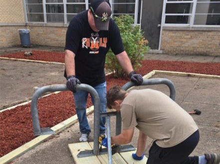 We want to thank the Caterpillar employees, many of them Manual High alumni, and Mr. Rice’s students for transforming the Manual High courtyard! Over fall break, they:
