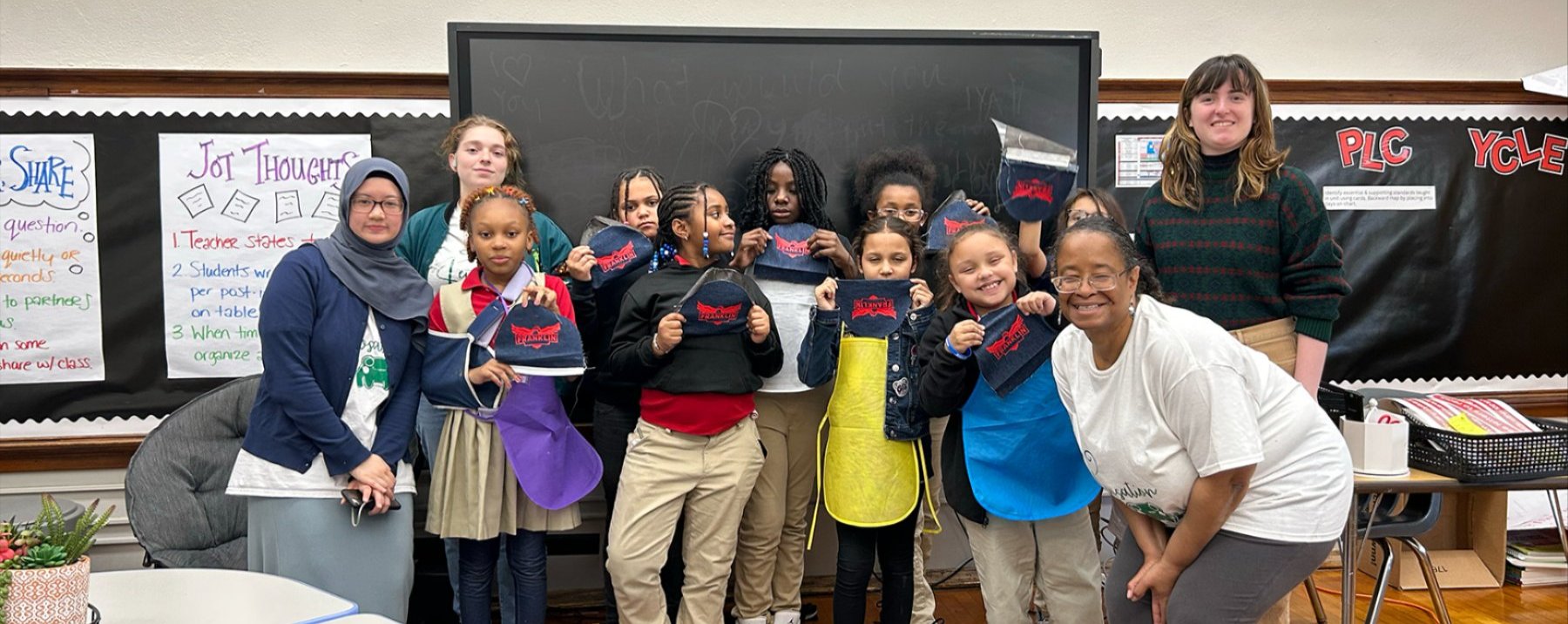 The Franklin Primary Sewing Club, led by Diane Lewis of Bradley University, empowers students with lifelong clothing repair skills, promoting sustainability and supporting the school’s clothing closet. |