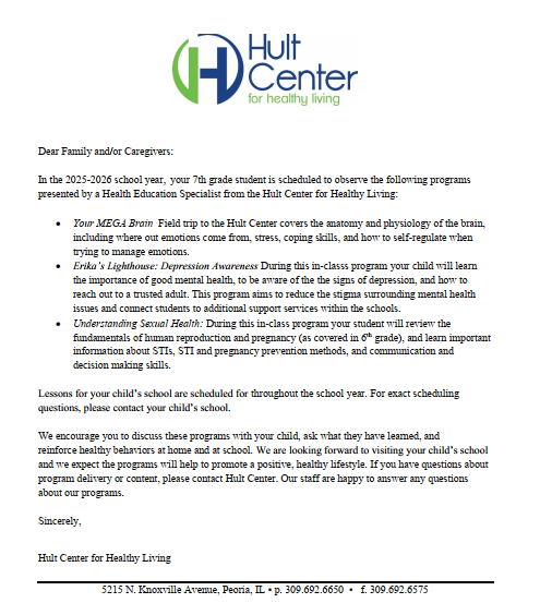 • 7th Grade HULT @ Sterling Understanding Sexual Health- more information to
