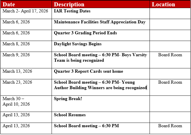 IAR STATE TESTING has started and we are off to a great start! WE NEED STUDENTS HERE EVERY DAY ON TIME SO THEY DO NOT MISS THEIR TESTING SESSIONS.