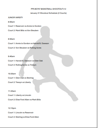 • 3:45-6:00 Boys' Basketball HOME Game vs Mark Bills- JV starts at 3:45, Varsity